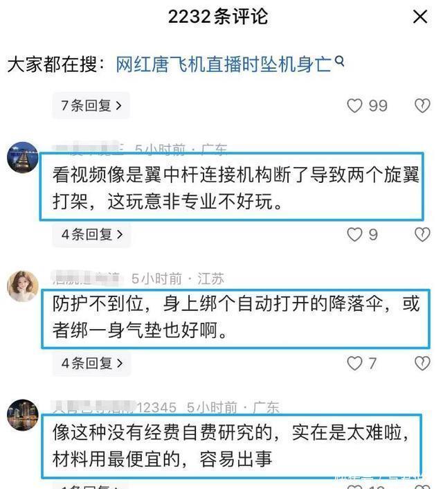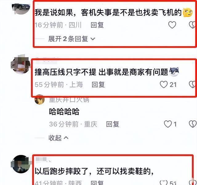 唐正兴坠机身亡这件事,在网上引发了激烈的讨论,大家讨论的方向却是这场事故的责任方是谁? 部分网友建议家属找卖家维权,称这架飞机是“二手故障机,此前有人买后因故障退货”。 但另一部分网友反驳:“跑步摔跤怪鞋?个人应担主责。”